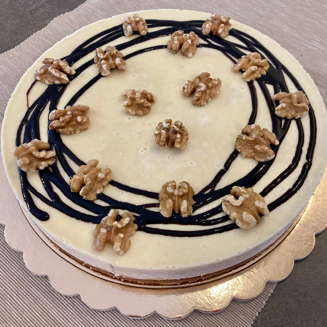 - La Cheesecake al Cioccolato bianco e Nocii è pronta per essere servita!