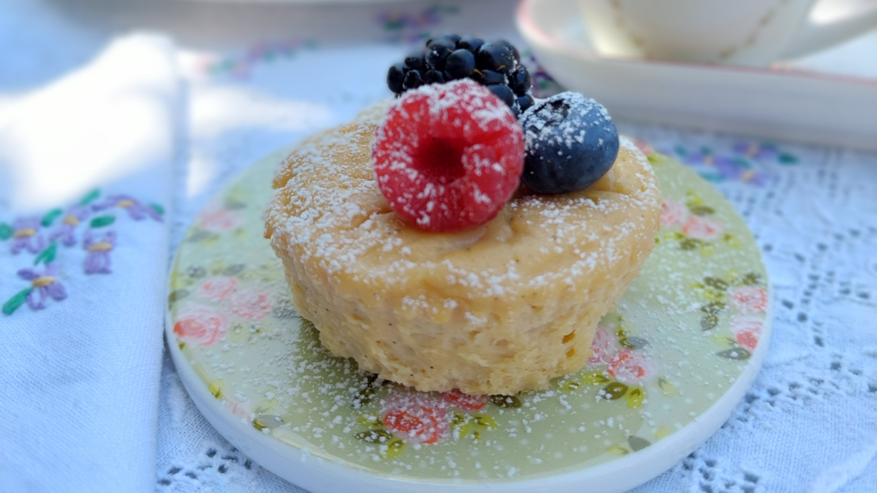 - Con un cucchiaio (io ho utilizzato il dosatore per gelati) versate la miscela nello stampo da muffins (con questa dose di composto sarà sufficiente un cucchiaio per ogni pirottino).Ho infornato a forno caldo ventilato 180° per 15/20 min. Una volta raffreddati, ho cosparso con zucchero a velo e decorato con frutti di bosco.Buona Colazione a Tutti.